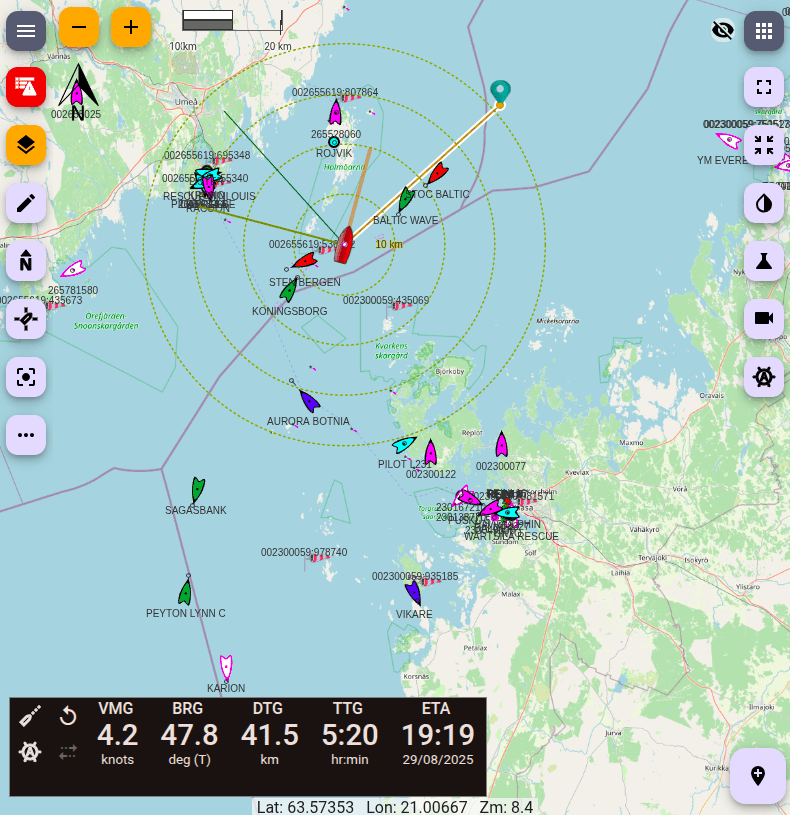 Freeboard provides a moving Vessel / Map display for both your vessel
